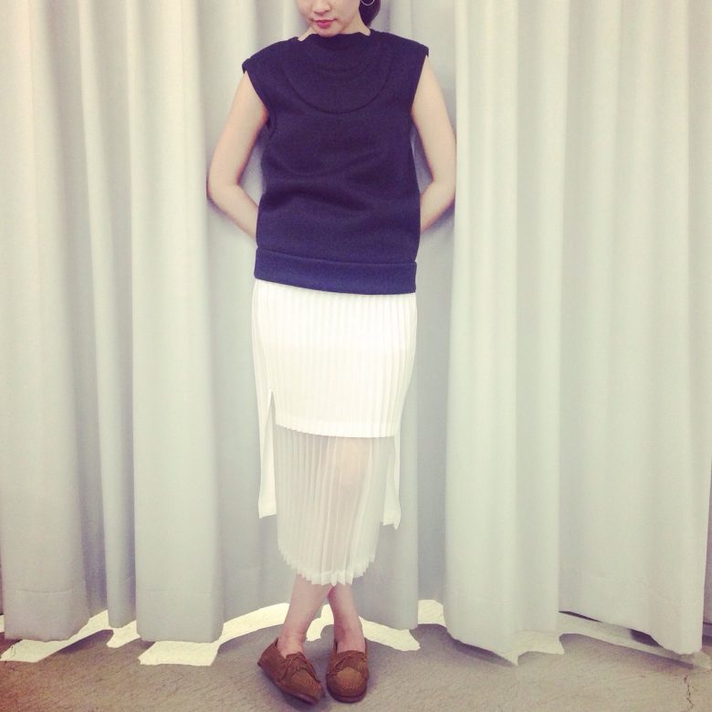 TOKYO 20.04.2016 プリーツが重なって透けるデティール。 構築的なデザインはCLEANA特有。 個性的ですが上品なスカートです。 CLEANA price…¥30,000+tax color…white,black 16ss cleana maisonmargiela WEAR