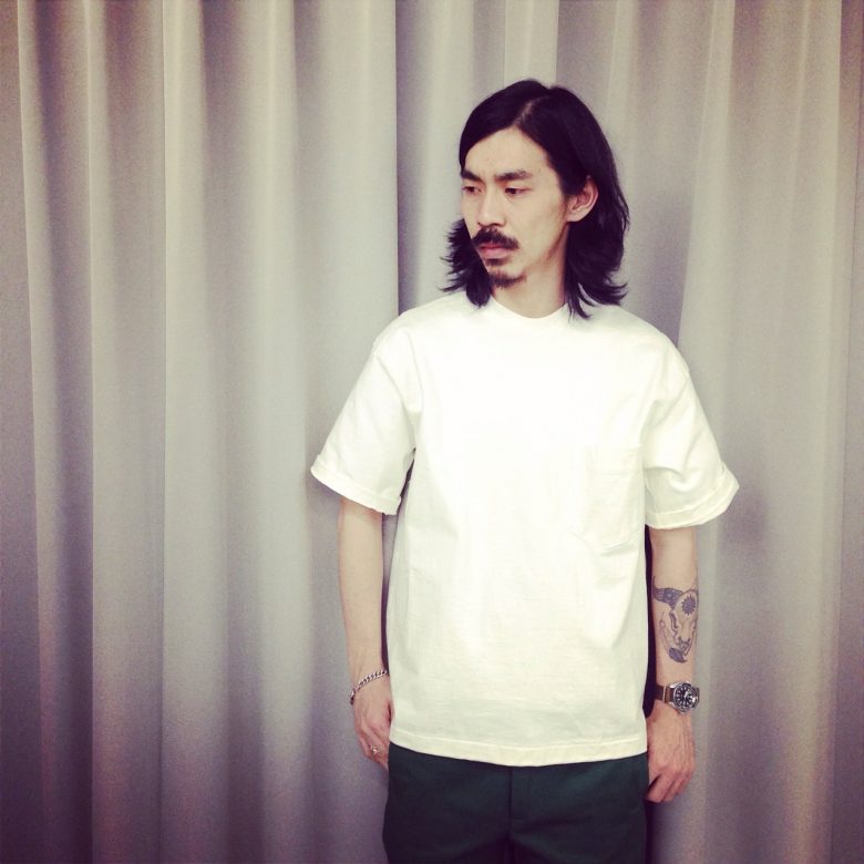 厚地のカットソーは一枚で着回しがききます!袖はロールアップして変化を!