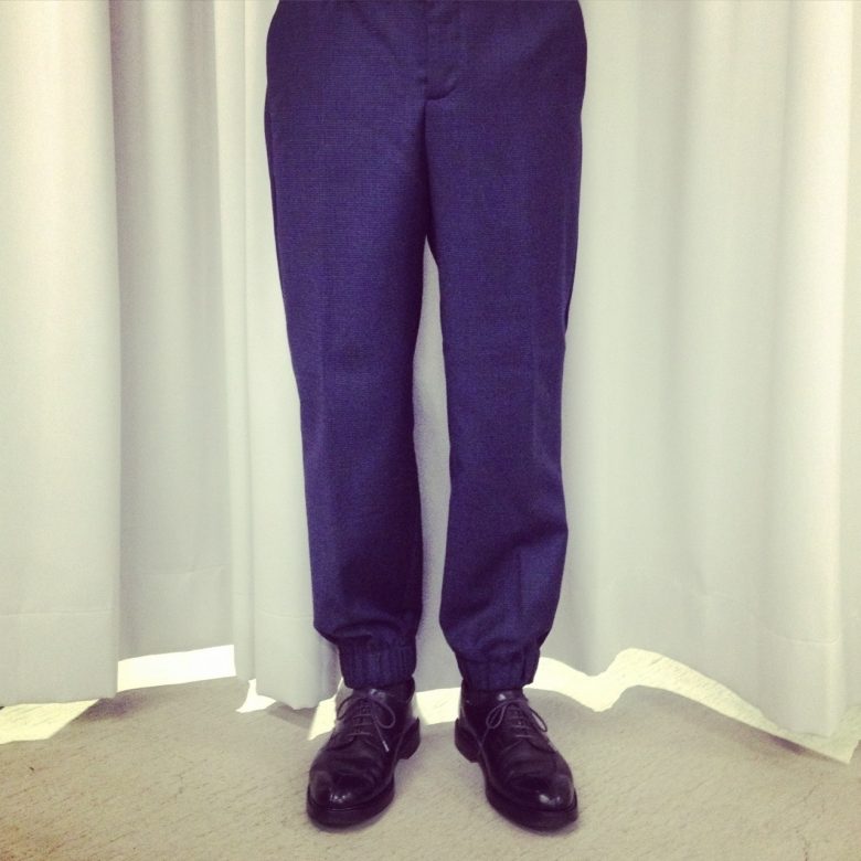 ELASTICATED PANTSは昨年よりややワイドなシルエットに。