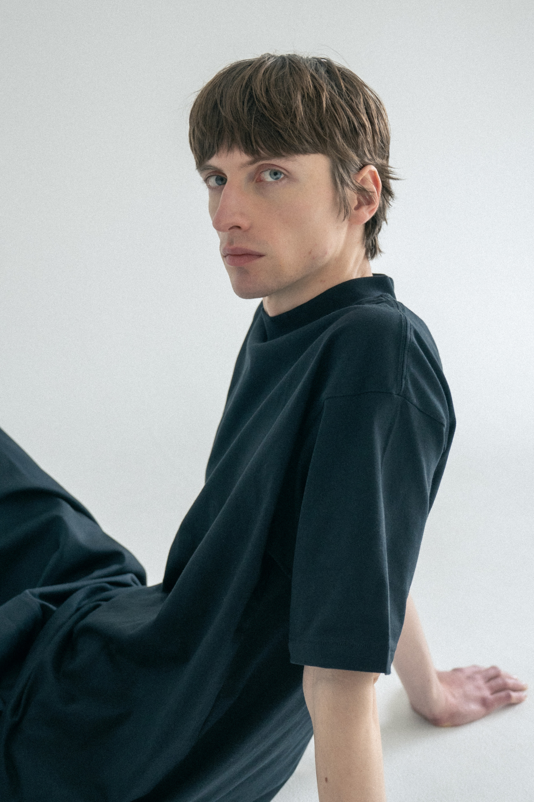 クルーネックの延長線上で着用できる絶妙なバランスの襟高でミニマルな印象です。