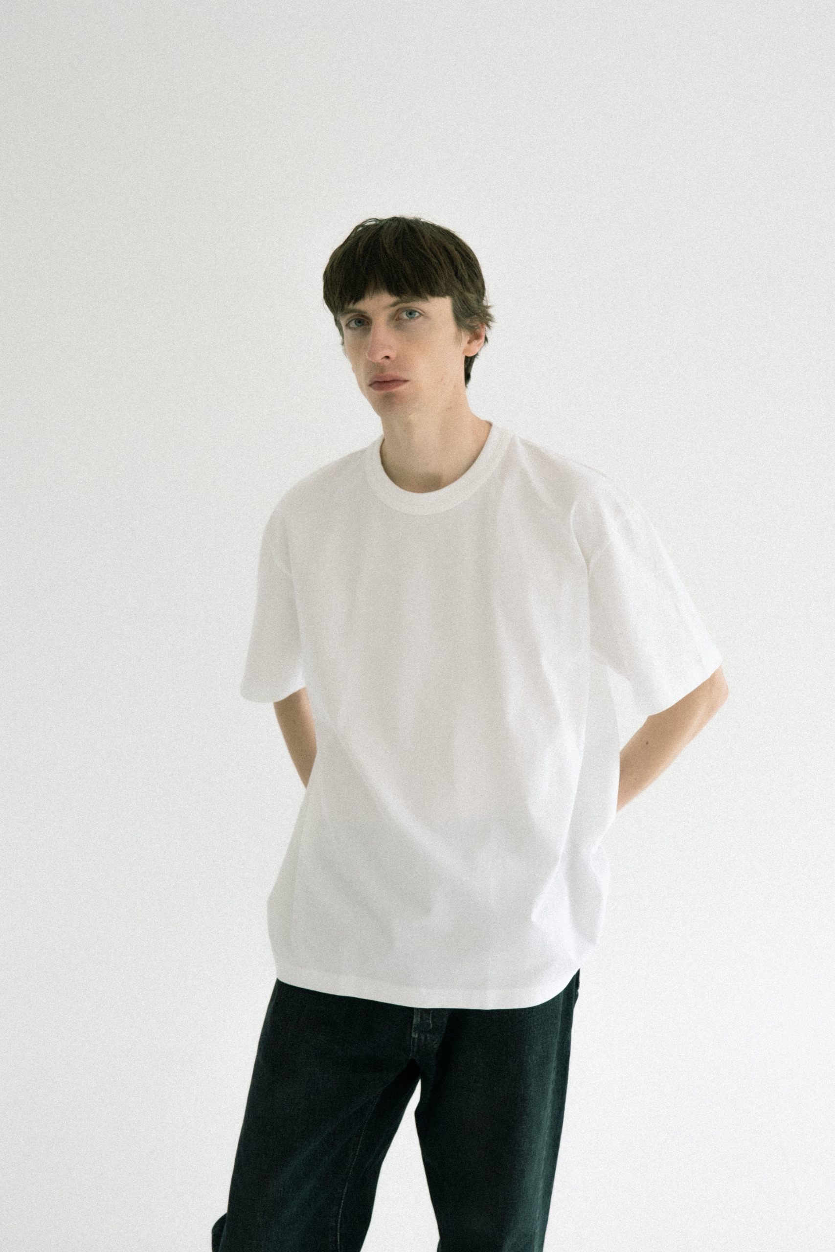 リラックス感とクリーンなムードを備えた最新モデルでは、ほどよく滑らかなタッチの 20 番手単糸で編み立てたリングスパンコットンを使用。
