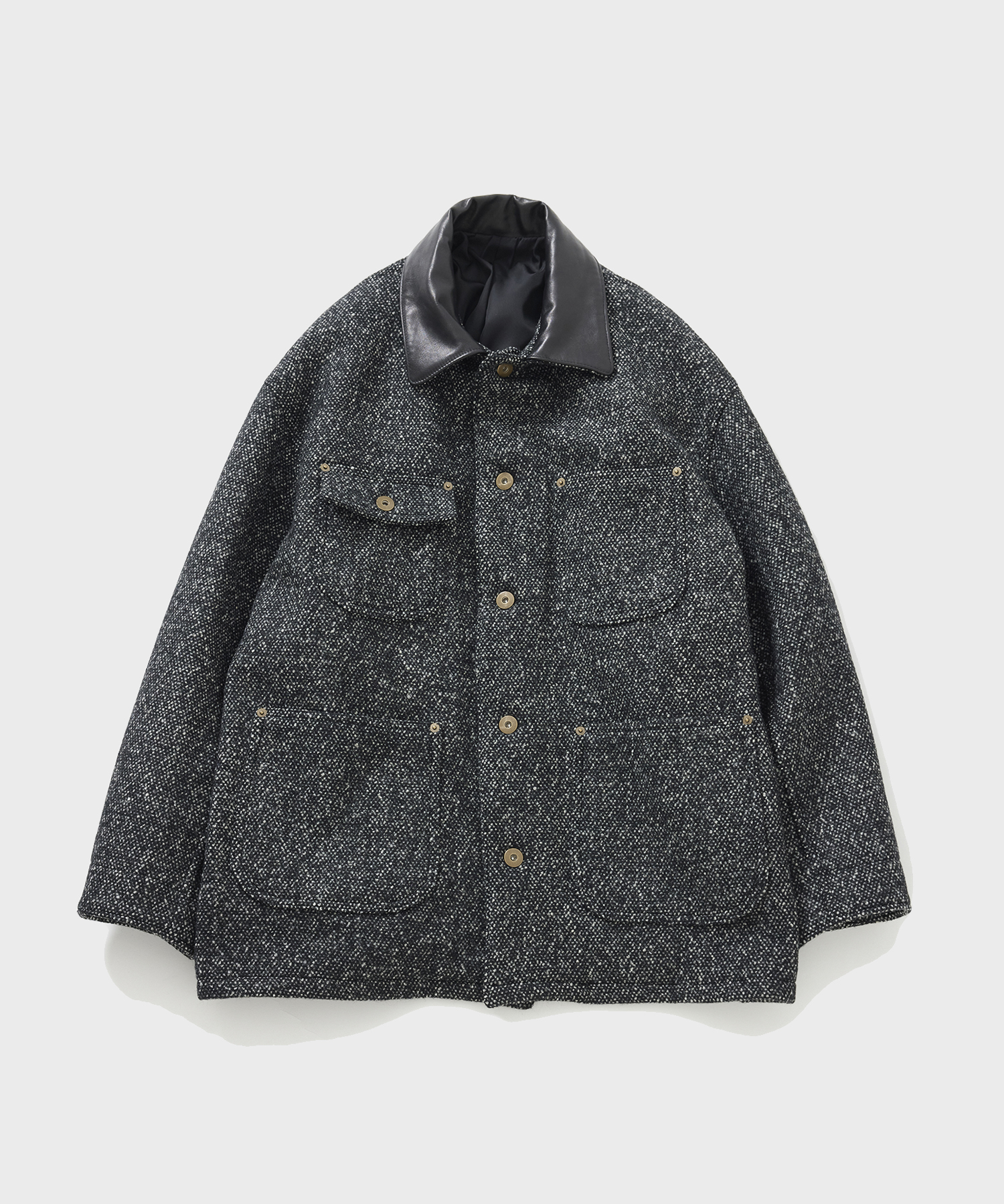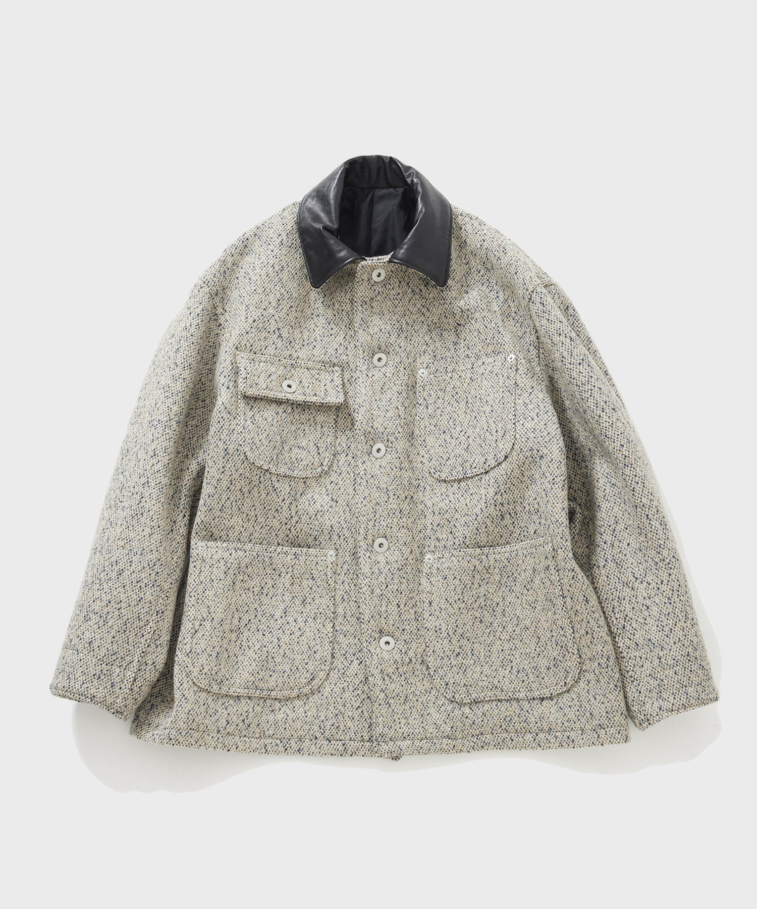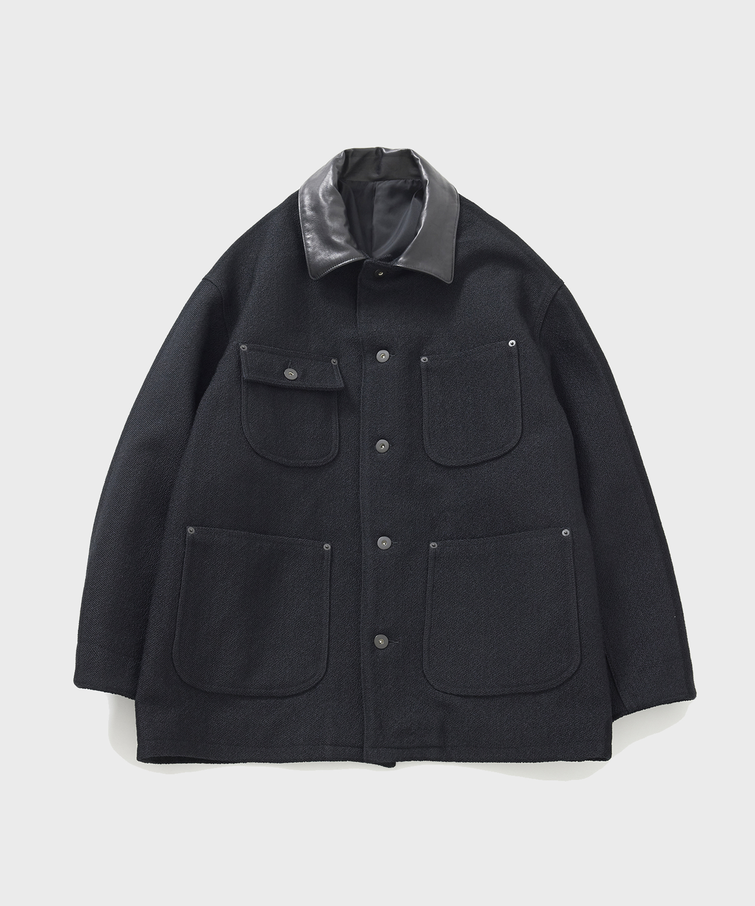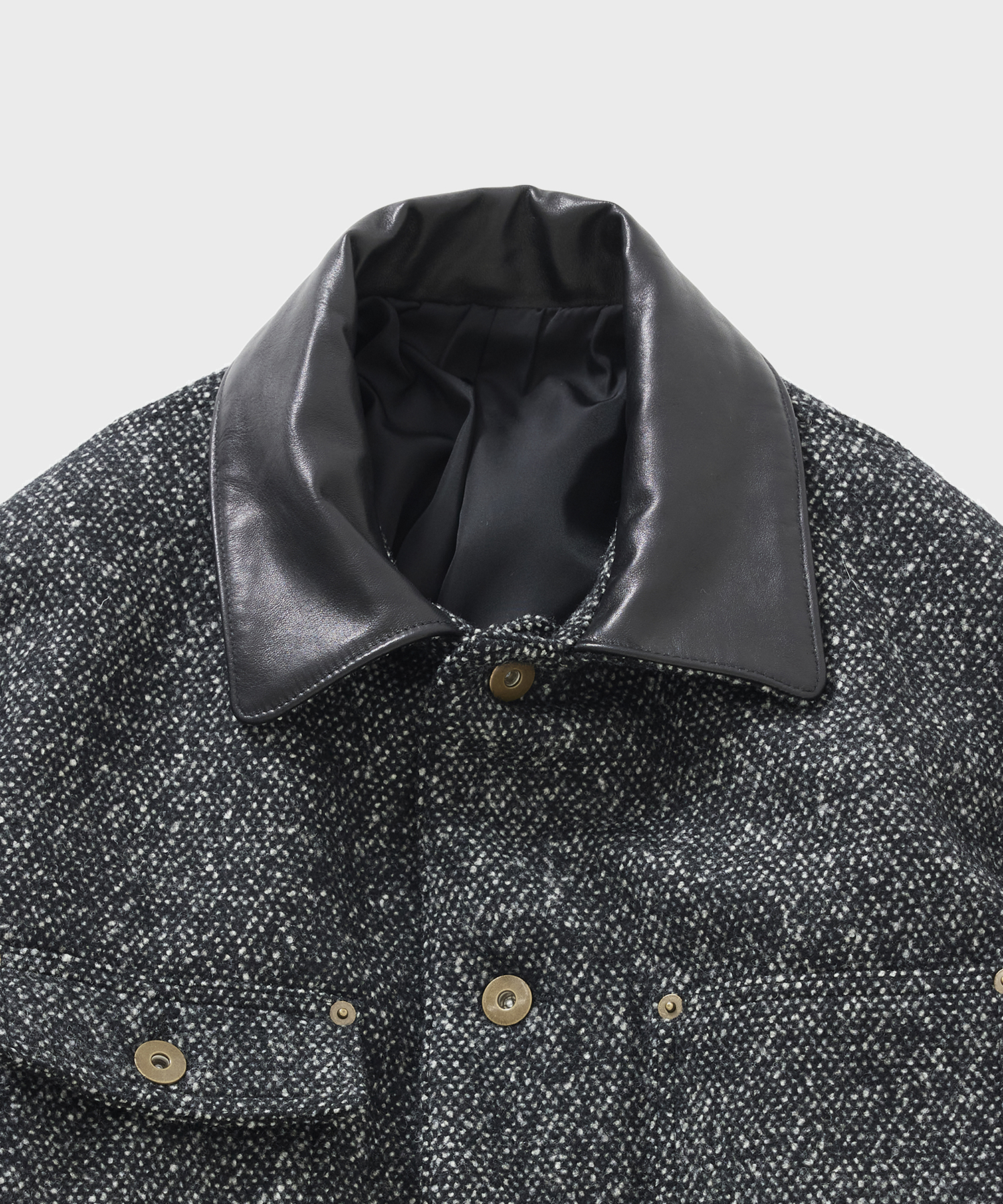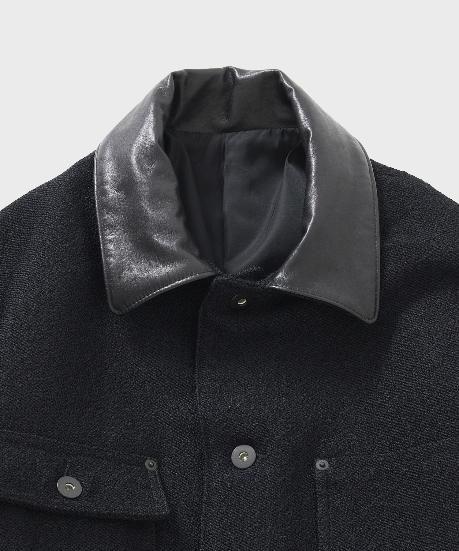 _ 襟部分のレザーには、肉厚ながらしなやかさのあるホースレザーを使用。