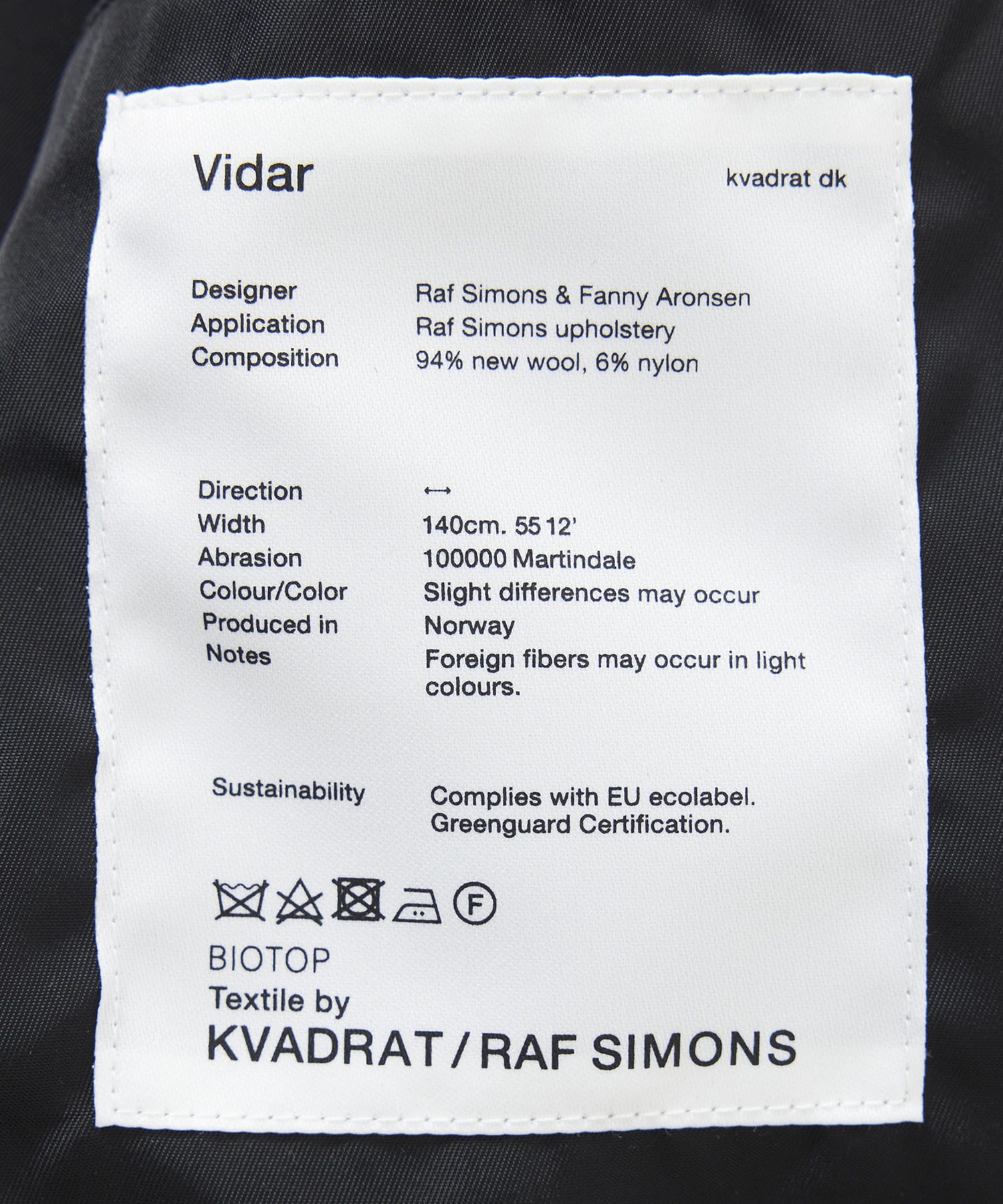 Kvadrat/Raf Simonsの生地名をプリントしたオリジナルネーム。