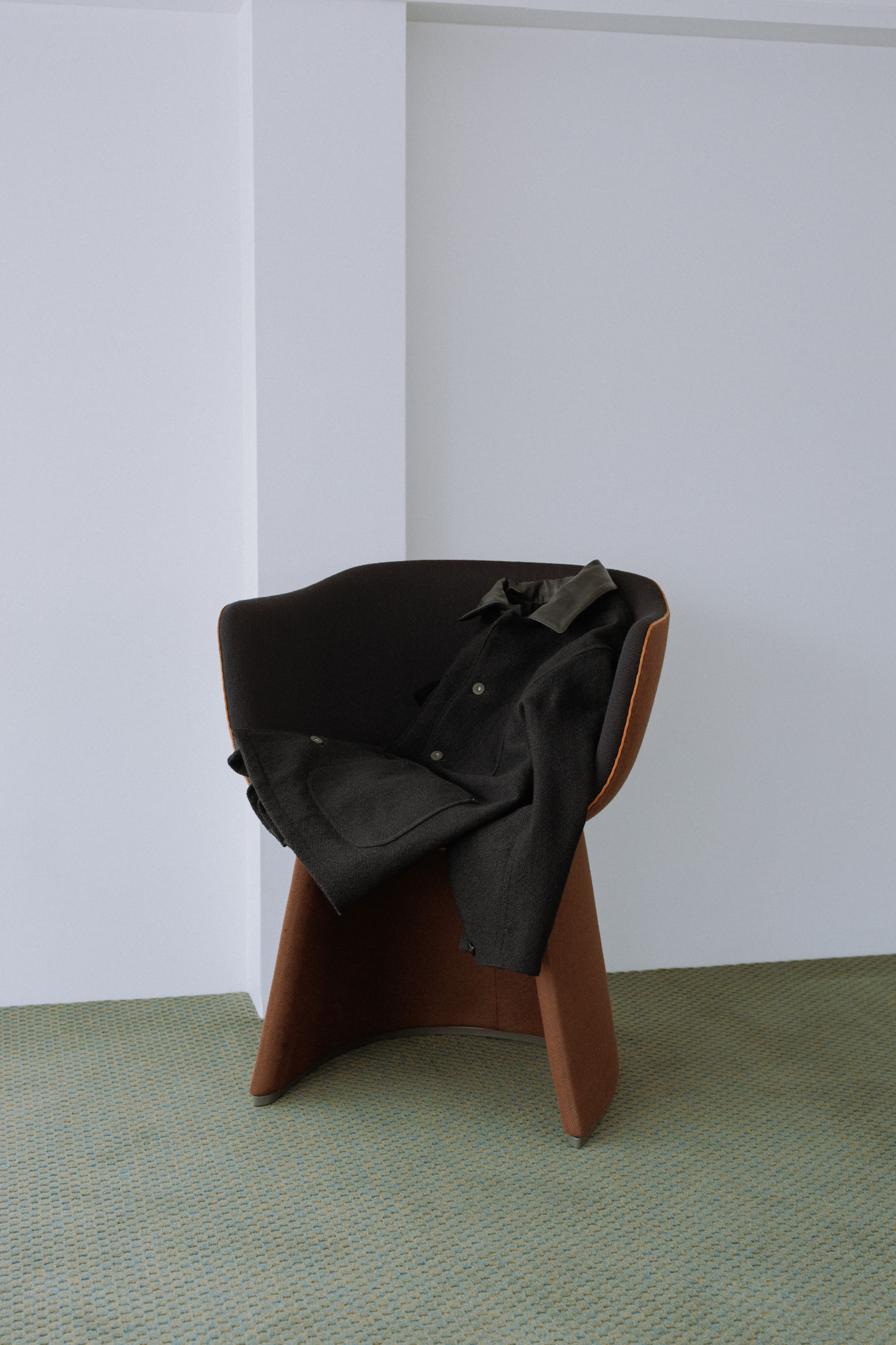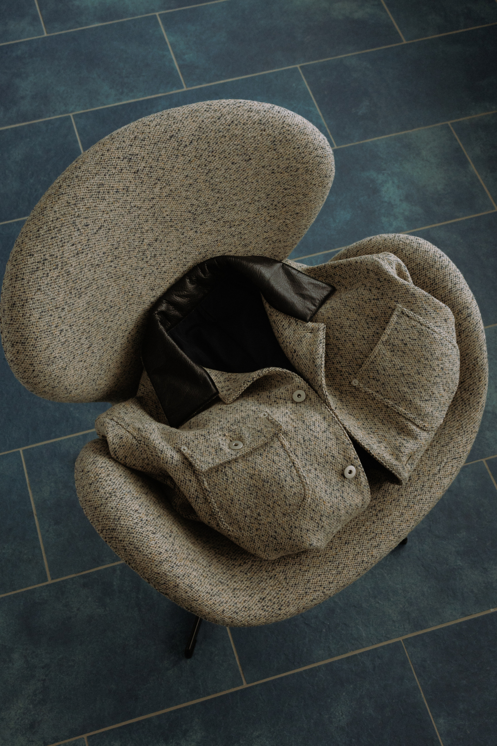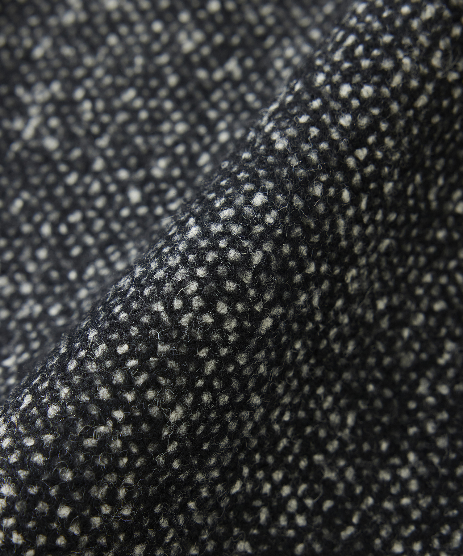 ループ状のブークレ糸で深く密に織り上げられ、細かく滑らかな感触が特徴です。やさしい風合いのサテンの表面仕上げは、深い色に多面的な豊かさを与え、その奥行きのある陰影とコントラストを生み出します。