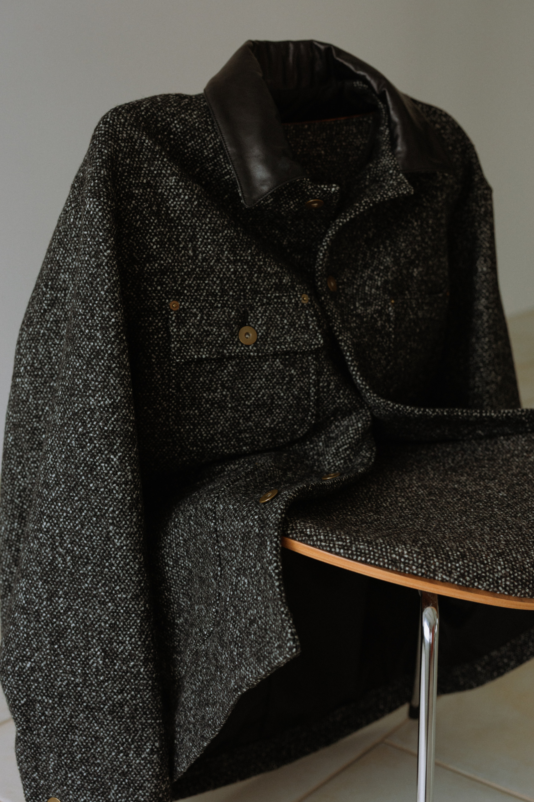 美しい仕立てを感じさせるVanirは、伝統的なウール素材のミリタリーコートにインスピレーションを得て、精密な技法で作られた緻密でありながら柔らかな質感のテキスタイルです。