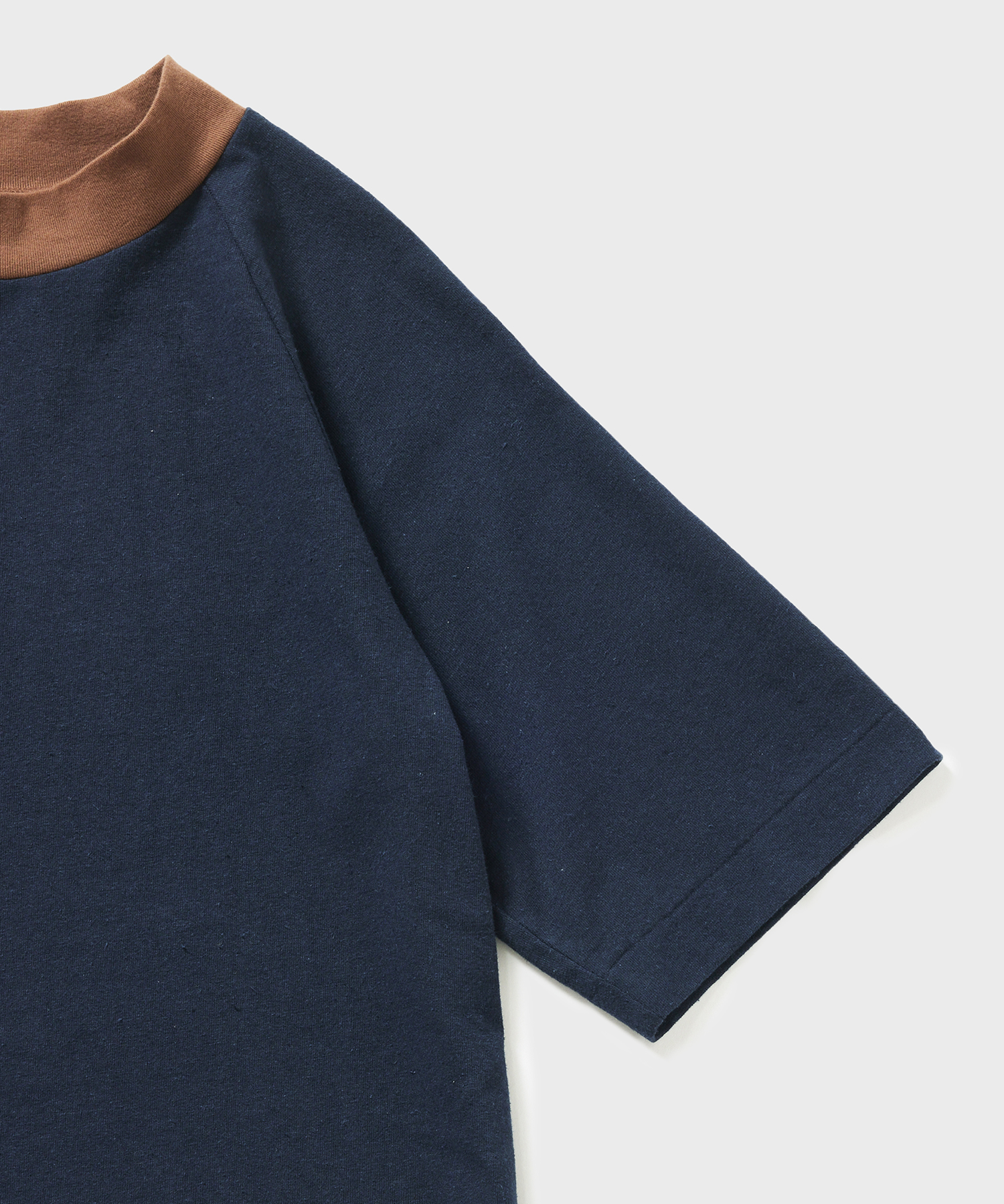 別注カラーのネイビーはブラックよりも軽やかで日常へ取り入れやすく、ネックに配した明るめのブラウンが程よいアクセントとなり、BIOTOPらしさのあるシックなカラーリングに。スタイリングの幅が広がる汎用性の高い一着に仕上がりました。