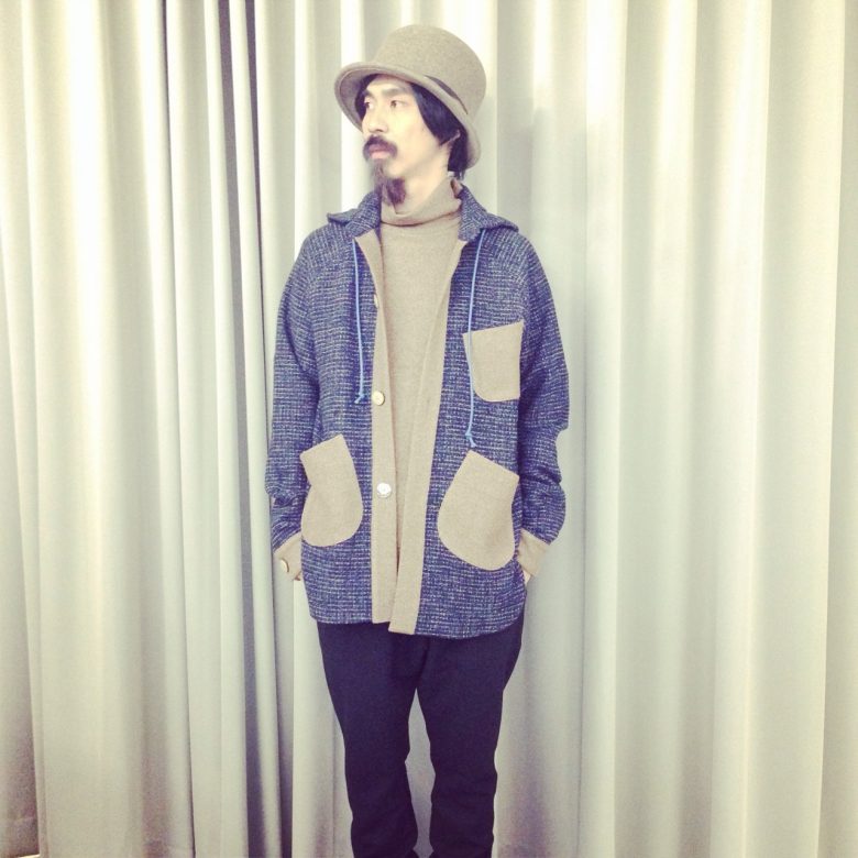 独特なシルエットのウールパーカーに、股下の深いパンツのスタイリングが新鮮です!